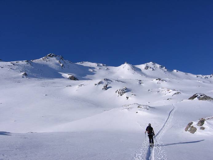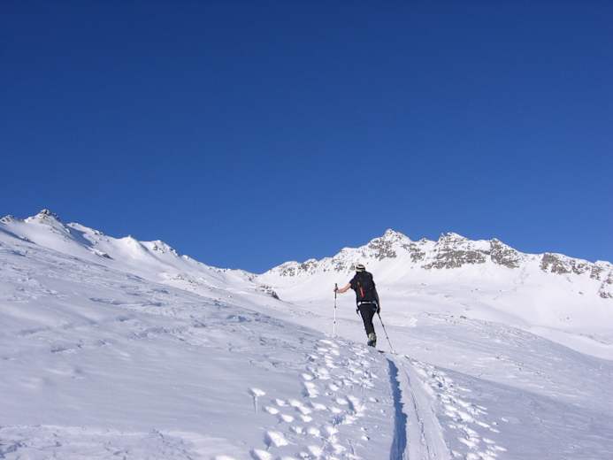 Wenn es die Wetterverhältnisse oder die verfügbare Zeit einen Aufstieg zum Piz Scalotta nicht erlauben, man aber dennoch kurz in die Ski steigen möchte, dann kann nach dem Durchstieg des Val Beiva am Sattel nach Osten leicht ansteigend den Crap da Radons (2.366 m) erreichen.