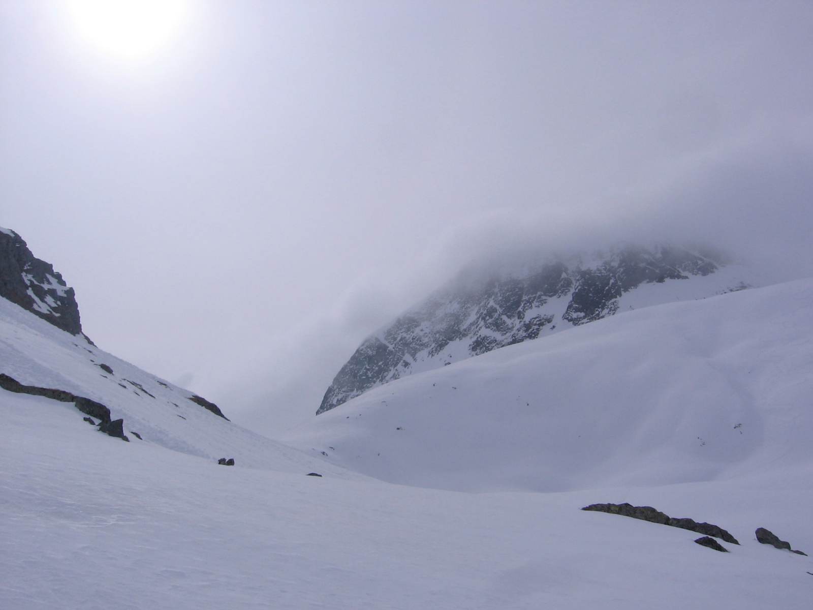 Nun kann man durchatmen und kontinuierlich aber wenig steil gegen Südwesten bis unter den Gipfelaufbau des Piz Turba gleiten. Gegen Ende dieses Hochtälchens wird es für die Ski zu steil - man errichtet ein Skidepot. Wer möchte, dann über den Westgrat zum Gipfel hinauf.