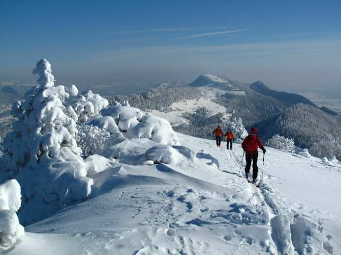 Aussichts- und abwechslungsreiche Skitour an der Grenze von Solothurn und Berner Jura über Hasenmatt (1.445 m), Stallflue und Oberdörferberg nach Crémines. Trotz der moderaten Höhe herrschen hier im Winter oft perfekte Skitourenbedingungen und die schönen Abfahrtshänge bieten viel Platz und jede Menge Pulverschnee. Lohnendes Skitourenziel in Stadtnähe, dass auch für Anfänger und Einsteiger geeignet ist.