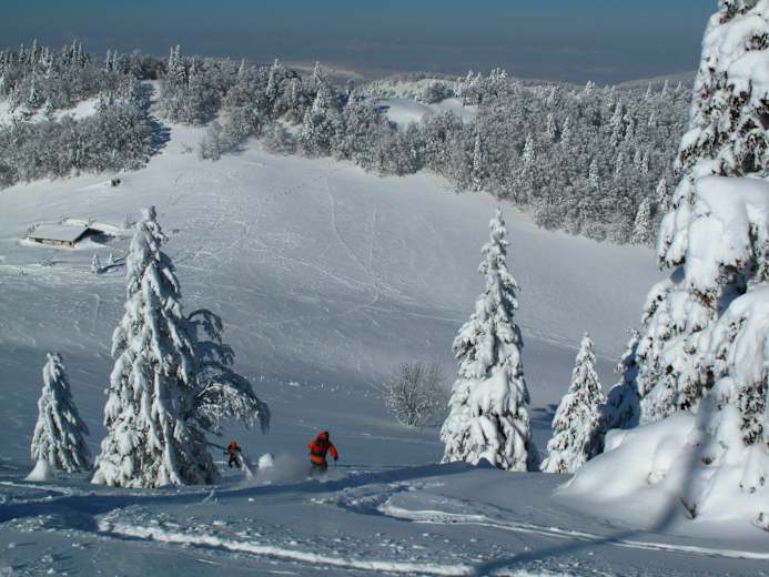 Weiter recht flach in Richtung Nordost bis etwa 1.200 m. Von hier eine wunderschöne Abfahrt auf oft pulvrigen Nordhängen über Sur les Rives nach Crémines (616 m).