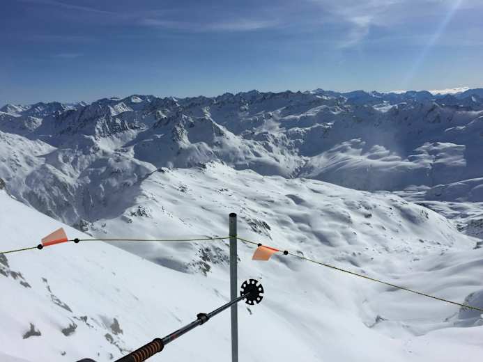 Für echte Cracks bietet sich die Direktabfahrt vom Gemsstock zum ersten Sattel durch zwei breite Couloirs an. Diese Variante erfordert jedoch sichere Verhältnisse, exzellente Geländekenntnis und sichere Skitechnik.