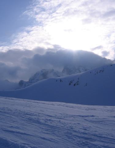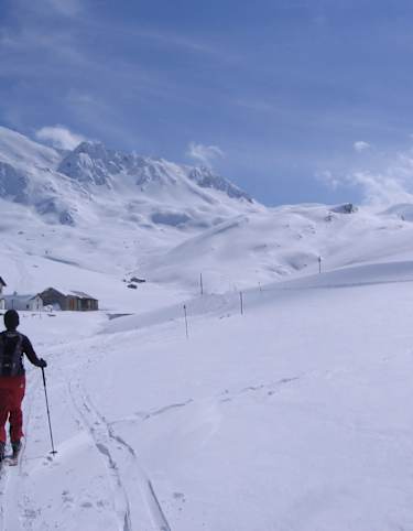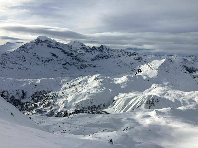 Piz Ursera (3.006 m): aussichtsreicher Skitourengipfel in den Livigno-Alpen am Grenzkamm zwischen Graubünden und Lombardei mit fantastischem Ausblick auf die bekannten Gipfelgrößen um den Berninapass wie Piz Palu, Piz Zupo, Piz Bernina mit dem Biancograt und Piz Morteratsch. Der Zustieg erfolgt von der Saseo-Hütte (1.985 m)