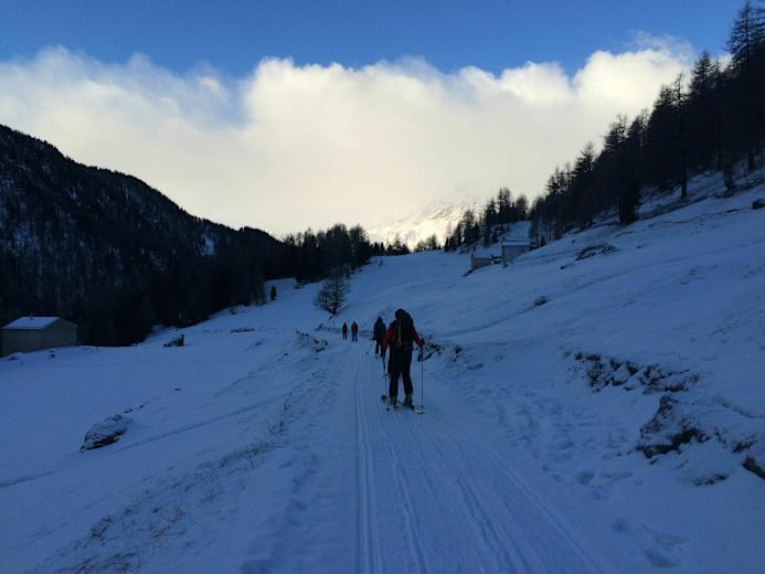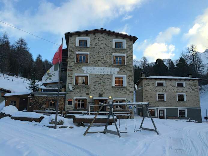 Das komfortable Rifugio Saseo (1.985 m) ist idealer Ausgangspunkt für die großteils rassigen Skitouren auf die Dreitausender des Val Camp. Hier gibt es leckeres Essen und Hüttenwirt Bruno gibt gerne fachkundige Auskunft zu den aktuellen Verhältnissen.