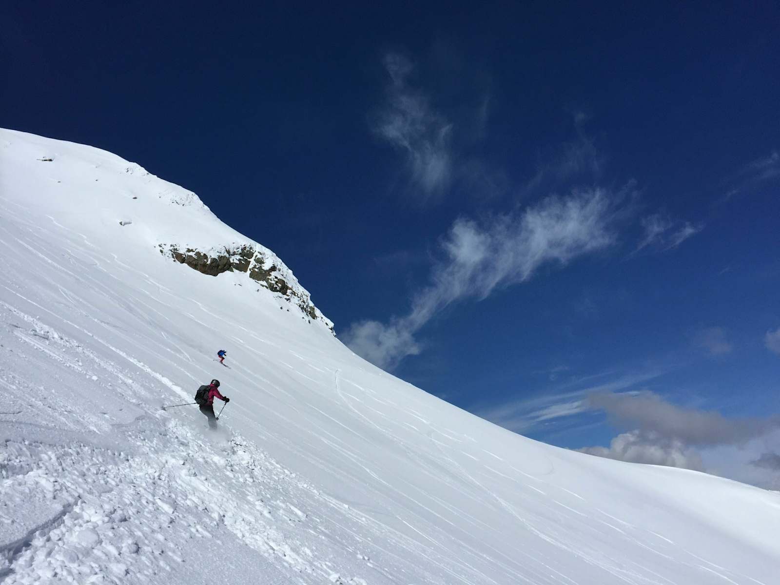 Je nach Schneelage sind die ersten paar Meter zu Fuss zurückzulegen. Dann geht es über eine Folge von Rücken und Mulden immer in südwestlicher Richtung bis man auf circa 2.650 m den spaltenarmen Gletscher erreicht.