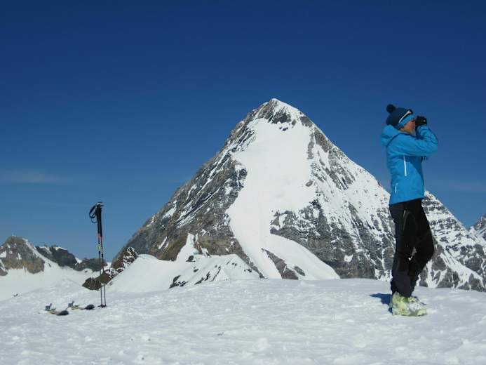 Die fünfte Etappe der Skihochtour durch das Ortler-Massiv führt hinauf auf den 3.553 m hohen Monte Pasquale mit einer fantastischen Sicht auf die Königsspitze, die mit 3.859 m die zweithöchste Erhebung des Ortler-Massives darstellt.