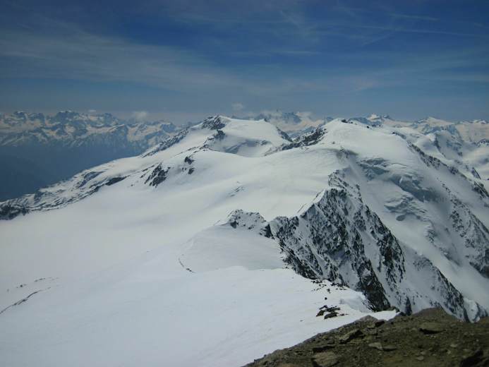Gleich hinter der Branca Hütte steigt man durch das Val di Rosole Richtung Monte Pasquale auf und erreicht über den Westrücken je nach Verhältnissen entweder zu Fuß oder mit Steigeisen den Gipfel des Monte Pasquale mit seinen 3.553 m.