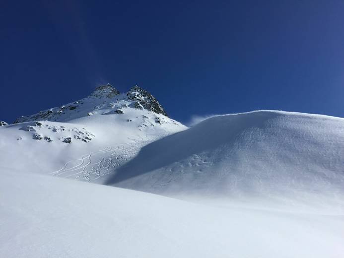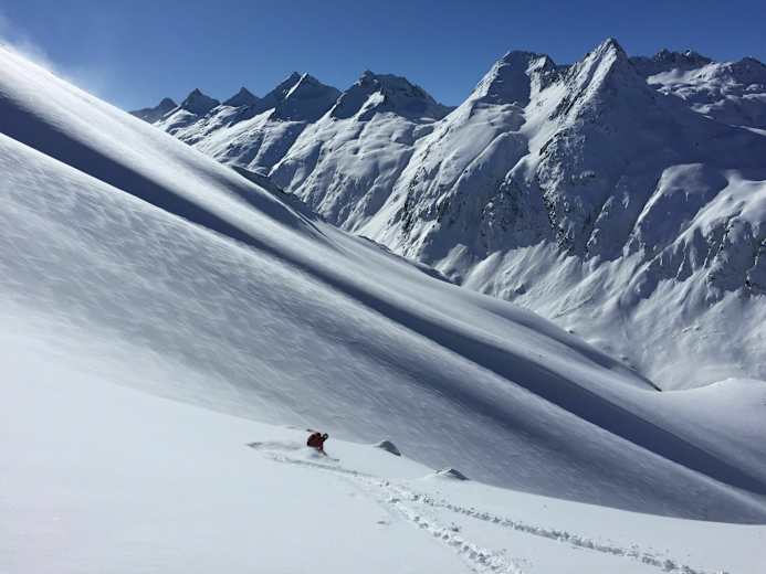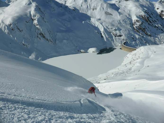 Doch nicht nur die Aussicht ist hier oben klasse, auch die 1.800 Tiefenmeter umfassende Nordabfahrt von der Fuorcla Gannaretsch nach Surrein hat meist traumhaften Pulver und perfektes Skigelände zu bieten. Dafür nimmt man die Mühen des Auto umsetzens bzw. die Kosten für ein Taxi zurück zum Lukmanierpass nur zu gern in Kauf.