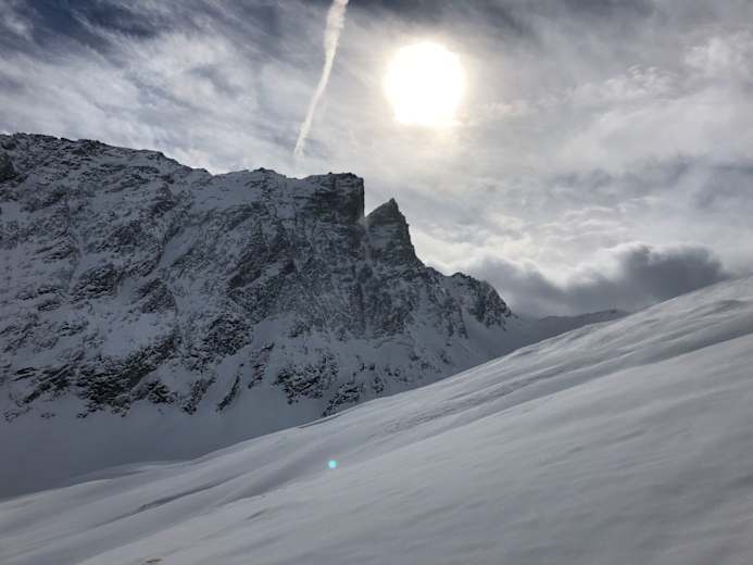 Abfahrt entlang der Aufstiegsroute. An der Brücke vom Aufstieg werden nochmal die Felle montiert für den Gegenanstieg nach Radons zum Skilift. Nach einer kurzen Einkehr im Berghaus Radons und einer wohlverdienten Stärkung, Abfahrt über die Skipiste nach Savognin.