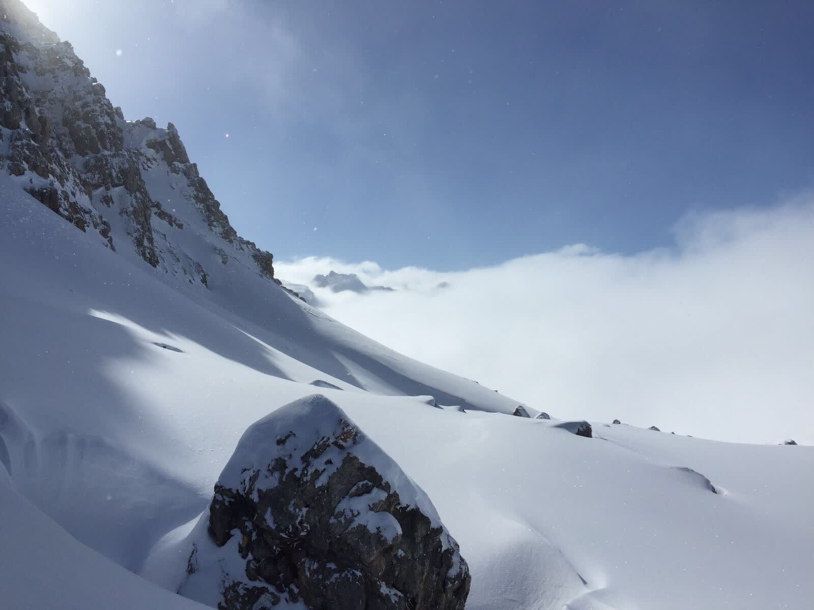 Eine äußerst lohnenswerte Abfahrtsvariante führt von P 2766 in nordwestlicher Richtung über das Val da Natons hinab zum Marmorerastausee.