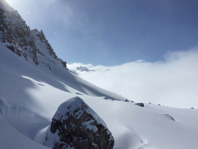 Besondern dann, wen man bei sicheren Verhältnissen die Variantenabfahrt zum Marmorerastausee unter die Ski nehmen kann. Ideales Skigelände und 1.200 Tiefenmetern zaubern mit Sicherheit jedem Tourengeher ein fröhliches Lächeln ins Gesicht.