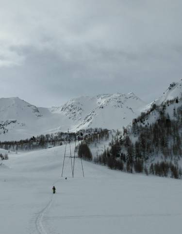 Nachdem der kräftezehrende Aufstieg schon wieder vergessen ist, folgt die traumhafte Abfahrt über Alprigenplatten zum Göscheneralpsee. Der breite Hang bietet viel Platz für eigene Spuren und aufgrund der nördlichen Exposition findet man hier oft noch nach Tagen besten Pulverschnee, so dass man die lange Abfahrt ausgiebig genießen kann.