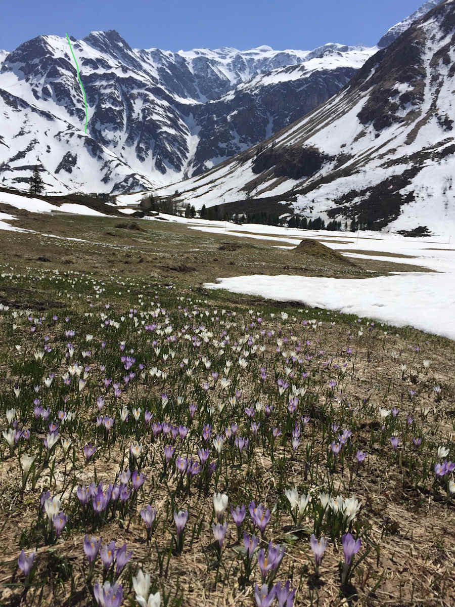 Bei guten Verhältnissen kann im Eselkar auch direkt rechts über die steile Rinne aufgestiegen und so abgekürzt werden.