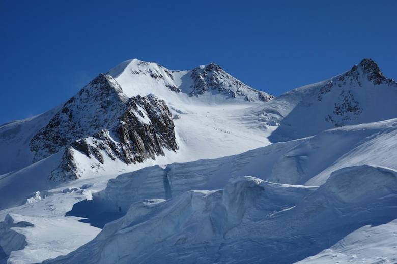 Der zweite Tag der Skihochtour auf den höchsten Berg Tirols, die Wildspitze mit 3.774 m, führt vom Winterhaus des Taschachhauses über den Taschachferner und über den Südgrat auf den Gipfel. Die Spaltensturzgefahr darf auf keinen Fall unterschätzt werden, die komplette Skihochtouren-Ausrüstung muss dabei sein.