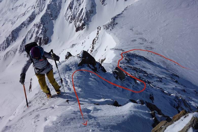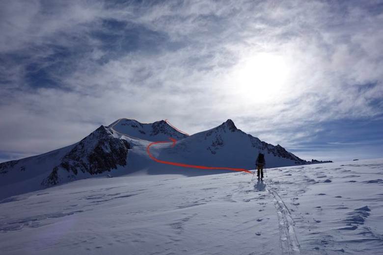 Ab dem Skidepot kann der Gipfelanstieg bei Vereisung heikel sein (Schlüsselstelle UIAA I+), Steigeisen, Seil und Pickel gehören auf jeden Fall zur Ausrüstung.