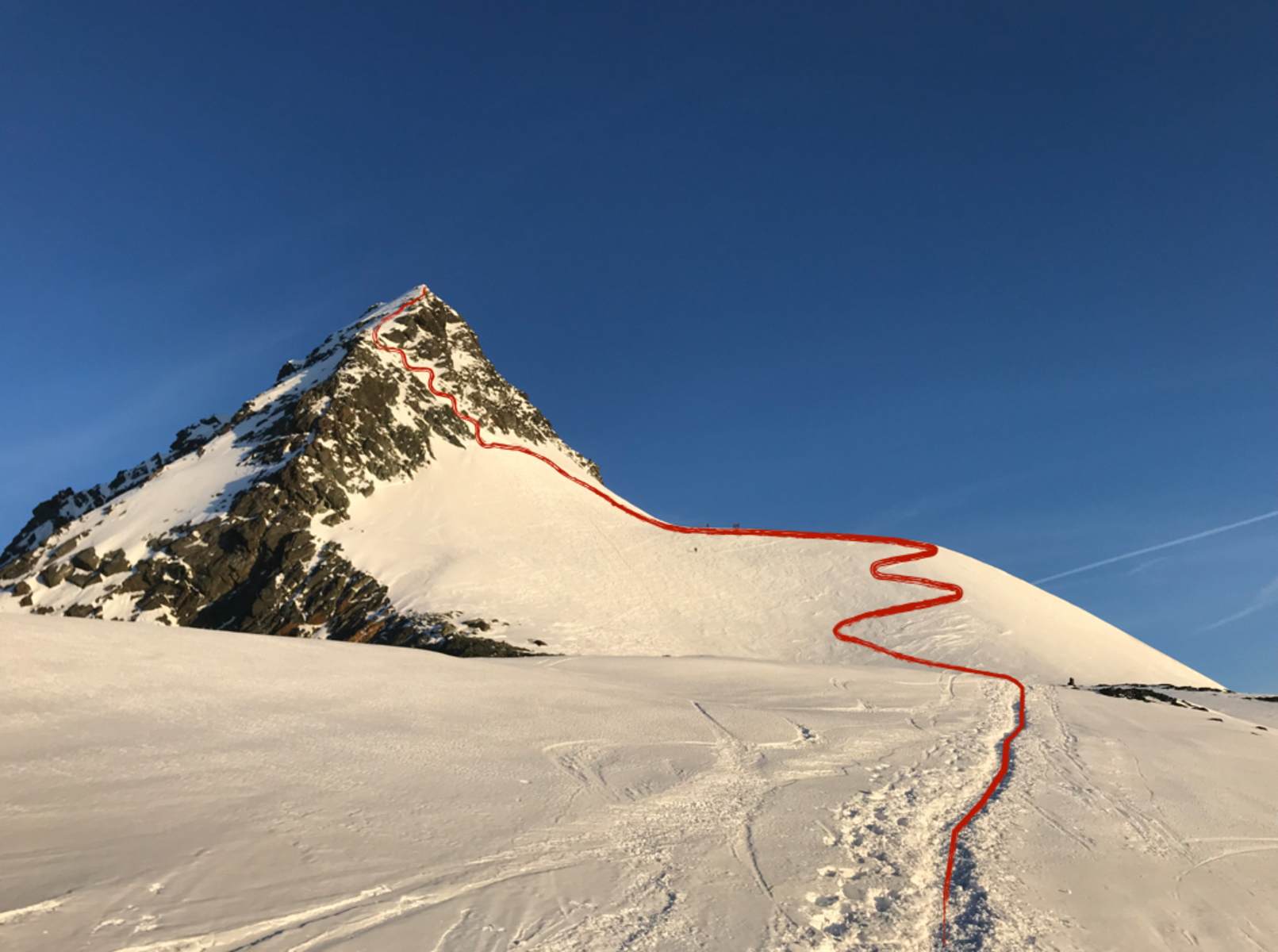 Man startet von der Stüdlhütte mit einer langen Querung in Richtung Osten. Im Frühjahr kann diese oft eisig sein und weil sie relativ steil ist (um 35°), empfiehlt es sich gleich mit Harscheisen loszugehen. Die Querung führt knapp unter den steilen Felsen vorbei, bevor man über einen kurzen Aufschwung zu einem großen Steinmann gelangt. Hier sieht man den Großglockner in seiner vollen Pracht und auch den Weiterweg gut ein. Ziemlich flach folgt man nun dem kupierten Gletschervorfeld, bis man das Ködnitzkees erreicht. Auch wenn die Spaltengefahrt auf dem Ködnitzkees im Frühjahr gering ist, empfehlen wir ganz klar den Gurt anzuziehen und die restliche Gletscherausrüstung griffbereit zu haben.