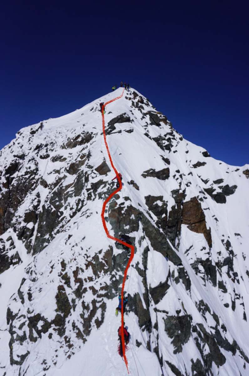 Zeit Tag 2: je nach Verhältnissen und Andrang am Gipfelgrat 4 - 5 h zum Gipfel, Abstieg und Abfaht ca. 2,5 - 3 h