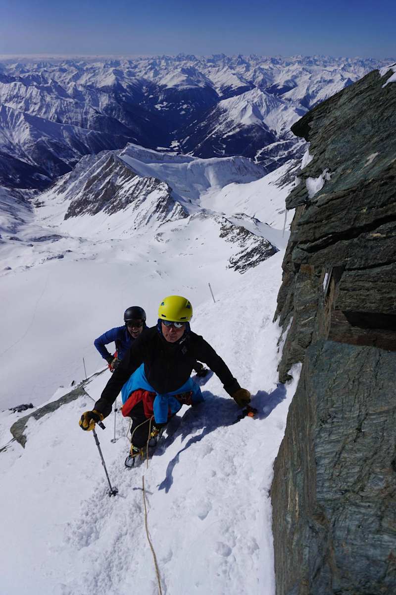 Atemberaubende Aussicht, am ausgesetzten Grat des Kleinglockners. Foto: Vittorio Messini