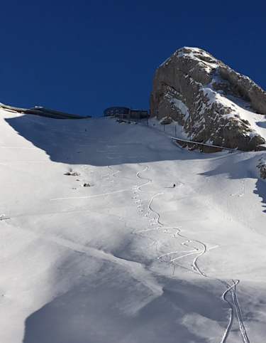 Wer die ganze Runde ohne Liftbenützung gehen will, sollte möglichst früh (vor dem Start des Liftbetriebs) aufsteigen. Der erste Teil führt über die Piste. Diese ist teilweise recht steil, so dass ein einfaches "am Rande gehen" nicht immer machbar ist.