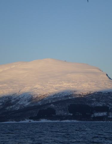 Der Hausberg von Djupvik ist der nördlichste, lohnenswerte Skigipfel in der Gipfelreihe oberhalb der Küstenlinie in Olderdalen. Dank der örtlichen Bergführer geht es nahezu hindernisfrei durch den Wald- und Staudengürtel. Darüber wartet ein unendlich breiter Gipfelhang, den man je nach Schneeverhältnissen beliebig aufsteigen und Abfahren kann. Hier kommen sich selbst mehrere Skitourengruppen nicht in die Quere. Der Gipfelgrat vom Nord- zum Südgipfel bricht ostseitig mit einer mächtigen, senkrechten Steilwand ab. Vorsicht deshalb am überwechteten Gipfelgrat!