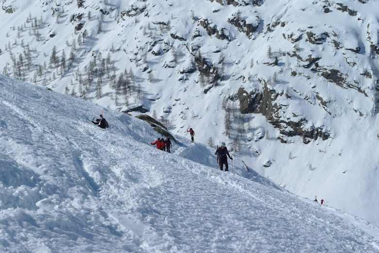 Vom Parkplatz in Pont zunächst etwa 1 km entlang der Langlaufloipe in Richtung Talschluss , dann links abzweigend entlang des Sommerweges zum Rifugio Vittorio Emanuele II. Zunächst noch mäßig steil gilt es auf den ersten zwei Dritteln einen schütter bewaldeten Aufschwung mit teils steilen Passagen und Querungen mit Spitzkehren zu bewältigen.