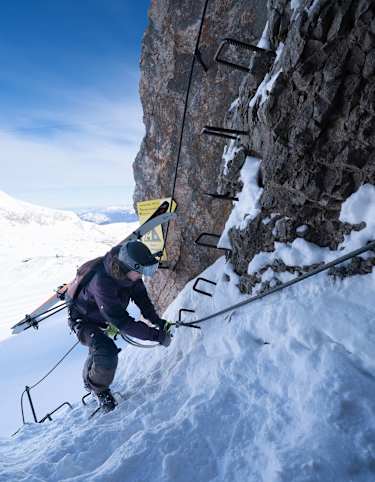 Im Frühjahr ist Vorsicht geboten. Aufgrund der westseitigen Lage kann die Gipfelflanke bei Firnschnee am Vormittag noch sehr hart sein.