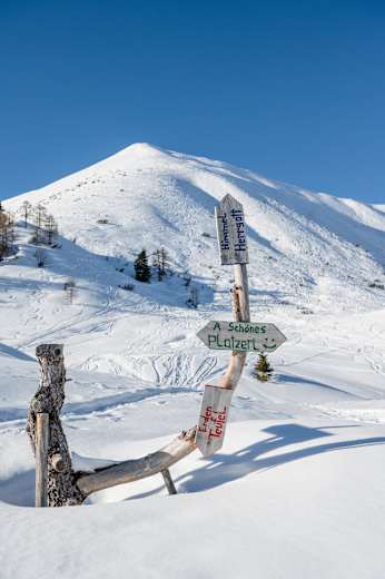 Entlang der Forststraße, die im Winter als Langlaufloipe dient, wandert man nur leicht ansteigend rund 2 km bis zur Hintergnadenalm. Ab hier hält man sich im Prinzip an den Sommerweg zur Südwiener Hütte. Die als Rodelbahn gewalzte Forststraße führt ebenfalls zur Hütte und kann bei geringer Schneelage vor allem für die Abfahrt nützlich sein.