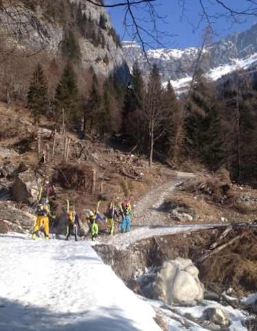 Abfahrt längs der Aufstiegroute. Es ist deshalb sinnvoll bereits vorher die Skier beim Skidepot vor der kurzen Kletterstelle zu lassen.