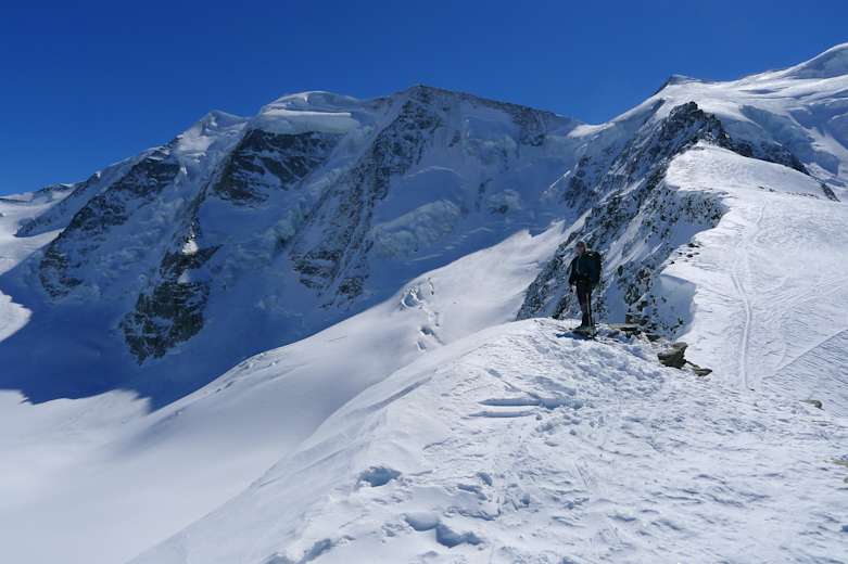 Gemsfreiheit - Auf der Gemsfreiheit Foto: Simone Bürgler Gemsfreiheit - Blick zum Piz Bernina während der Abfahrt Foto: Simone Bürgler Gemsfreiheit - Imposanter Austieg vorbei am Piz Palü Foto: Simone Bürgler
