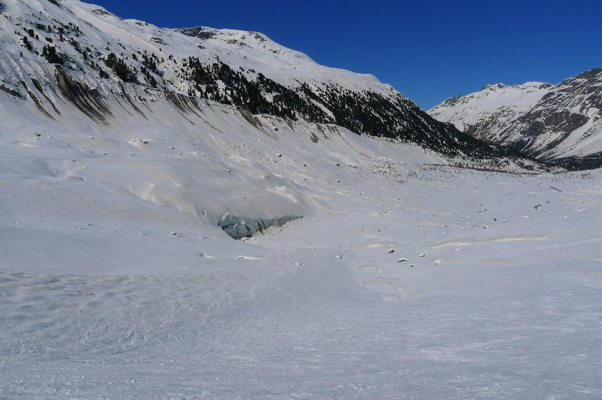 Blick auf die wunschönen Abfahrtshänge der Gemsfreiheit (Bildmitte) von der Diavolezza Bergstation Foto: Claudia Timm Gemsfreiheit - Tolle Abfahrt zur Isla Pers Foto: Simone Bürgler Gemsfreiheit - Am Ende des Gletschers, die Abfahrt geht aber noch weiter Foto: Simone Bürgler Gemsfreiheit - Eindrückliche Gletscherwelt Foto: Simone Bürger Bildergalerie (7)