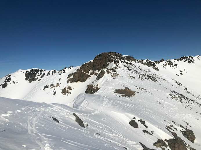 Über zwei Geländestufen erreicht man die weiten Hänge unterhalb des Piz Surlej. Es folgt eine weitere - nun steilere - Traverse Richtung Westen bis schließlich P. 3185 erreicht wird. Weiter über den Südgrat und das letzte Stück zu Fuss, mit den Skiern am Rücken hinauf zum aussichtsreichen Gipfel auf 3.134 m.