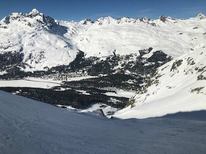 Abfahrt über die schattigen Traumhänge nach St. Moritz Bad Foto: Claudia Timm Bildergalerie (6)