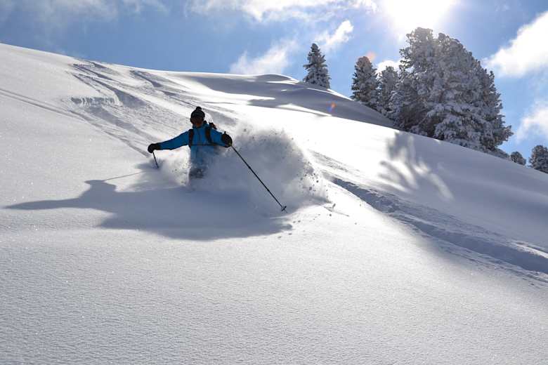 Im Bereich der Aufstiegsroute gibt es verschiedene Abfahrtsmöglichkeiten. Empfehlenswert ist die Abfahrt zum Berggastehof Loosbühelalm, die im Winter geöffnet hat.