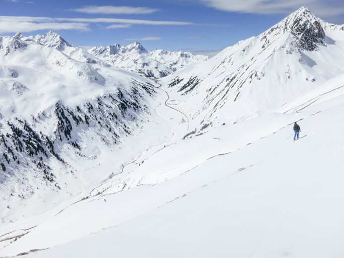 Die kurze, sehr beliebten Skitour mit Liftunterstützung im Tiroler Kühtai führt vom Ende der DreiSeenBahn über die Gaiskogelscharte auf den Gaiskogel (2.820 m). Durch Liftunterstützung kommt man hier mit nur 400 Höhenmetern Aufstieg auf 1.000 Meter grandioses, freies Abfahrtsgelände.