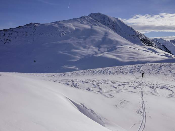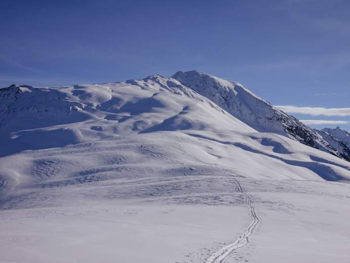 Wer es noch kürzer haben will, wählt die Standardskitour mit Liftunterstützung auf den Pirchkogel ab Kühtai.