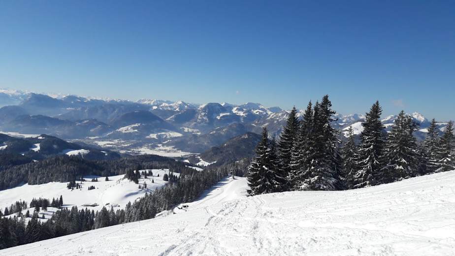 Der Spitzstein (1.598 m) gehört zu den beliebtesten Skitouren in den Chiemgauer Alpen. Der Anstieg von Sachrang ist nicht besonders lang, die Aussicht, gerade auf die Felszacken des Kaisergebirges ist sehr beeindruckend. Zudem lädt unterwegs noch das bewirtschaftete Spitzsteinhaus für eine Einkehr ein.