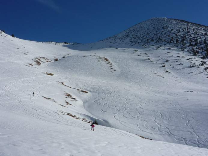 Die Abfahrt erfolgt am Anstiegsweg zurück zum Parkplatz bei Sachrang.