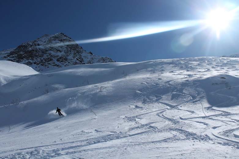 Alternative zum gesperrten Val Strem: Abfahrt entlang der Aufstiegspur über den Brunnifirn und Gegenanstieg über den Felsriegel. Anschliessend Abfahrt über Verclisa, Val Acletta bis Talstation der Luftseilbahn.