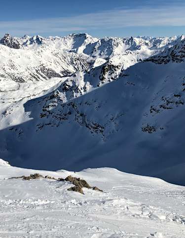 Absoluter Freeride-Klassiker in den Glarner Alpen Graubündens. Vom Péz Ault führt ein kurzer Anstieg zu einer Felslücke, die eine sagenhaft lange Abfahrt ins Val Strem freigibt. Wenig Aufwand und viel Abfahrtsspass mit alpinem Touch beschreibt die Skitour perfekt. - Einfach prächtig!
