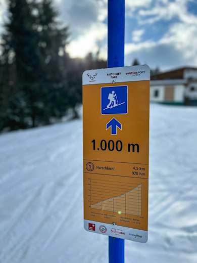 In regelmäßigen Abständen informieren die Tafeln über den weiteren Routenverlauf im Skitourenpark St. Johann Foto: Ueli Reißner, Dynafit