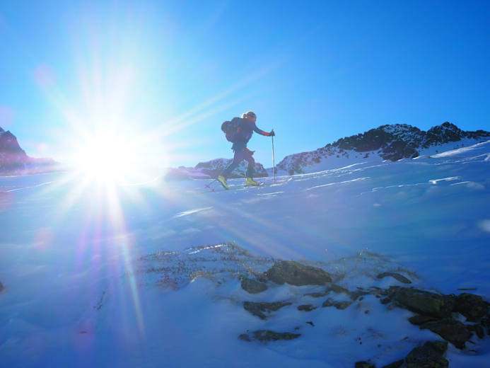 Je nachdem, wo man parkt bzw ankommt, nimmt man die Albonabahn I (von Stuben aus) oder die Albonabahn II (vom Parkplatz Valfagehrbahn), um von der Bergstation der Albonabahn II (Albonasattel, 2.300 m) mit einem ersten Anstieg zu beginnen.