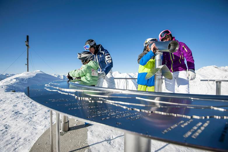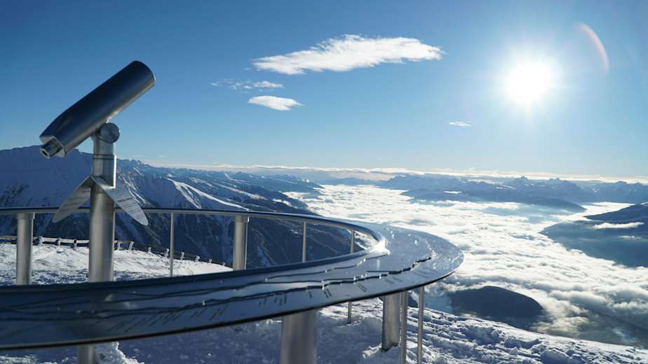 Am Gipfel des Gitschbergs wartet eine Aussichtsplattform, die spektakulär in die Felsen gebaut ist. Von der Plattform sieht man an klaren Tagen mehr als 500 Alpengipfel. Für die Abfahrt sind die Pistensperrungen am Abend für die Präparierung ist einzuhalten.