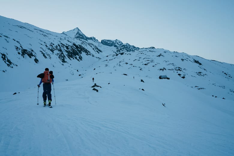 Die Skitour auf die Hochalmspitze mit ihren 3.360 m über die Villacher Hütte in Kärnten ist einer der großen Klassiker in den Hohen Tauern und das hat viele Gründe: Zum einen ist die Skitour mit 2.200 zu überwindenden Höhenmetern in Kombination mit einer Wegstrecke von 12 km ein absoluter Konditionshammer und eine der längsten Tagestouren in der Umgebung, wenn man nicht auf der kleinen Selbstversorgerhüte Villacher Hütte übernachtet. Zum anderen ist die Tour vom technischen Anspruch her erstaunlich moderat (kurze Stellen 35°) und bietet – wenn man einmal die lange Forststraße bis auf 1.900 m Seehöhe hinter sich gebracht hat – wunderbar weite Skihänge. Sie bieten sich gleichermaßen – bei sicheren Verhältnissen – für Pulvertage im Hochwinter wie für Firnverhältnisse im Frühjahr an. Zu guter letzt wird bei dieser Tour einer der markantesten Gipfel in den Hohen Tauern bestiegen: Nicht umsonst wird die Hochalmspitze auch „Tauernkönigin“ genannt.