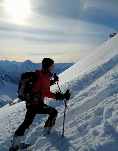 Bei dieser Tour lohnt es sich auf jeden Fall früh aufzustehen. Zum einen, weil man dann noch alleine ist, zum anderen aber vor allem deswegen, weil dann der Schnee noch gefroren und die Lawinengefahr dadurch geringer ist.