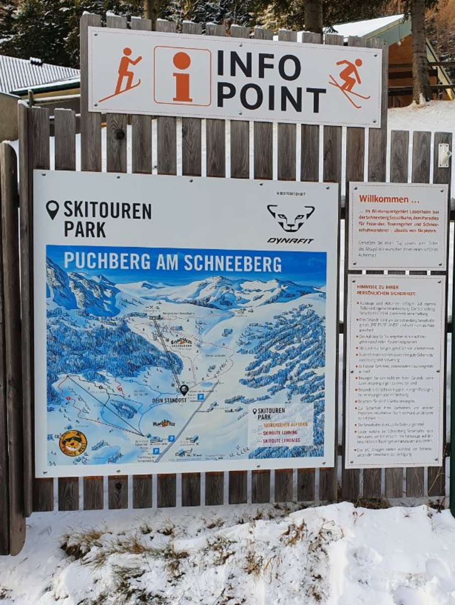 Über die B26 bis nach Puchberg, beim Bahnhof über die Gleise, rechts in die Bahnhofstraße abbiegen; rechts in die Schneebergstraße und weiter bis Losenheim. und dann wieder rechts in die Schneebergstraße. Auf dieser bis Losenheim und bis zu den Liften.