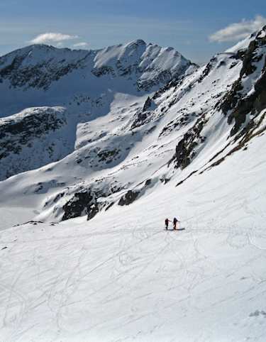 Von der Kleinarler Hütte geht es ca. 250 Höhenmeter im ungesicherten Gelände orientierungsmäßig einfach und meistens gespurt in Richtung Westen, dann nordwestlich über eine kurze Steilstufe in das Kar und auf den Penkkopf. Die Abfahrt geht über freie Hänge zurück zur Kleinarler Hütte und folgt im Wesentlichen der Aufsstiegsspur.