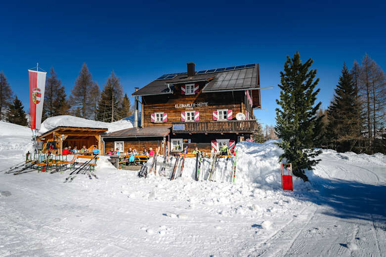 Je nach Schneelage startet die Tour im Ort Kleinarl an der Brücke beim Hotel Angerwirt oder weiter oben am Parkplatz Hirschleiten. Zunächst geht es aus dem Ort über die Kleinarler Ache, die Forststraße hinauf bis zum Parkplatz Hirschleiten. Ab hier verläuft der Weg über Wiesen und durch den Wald und quert öfters die Forsstraße (Achtung: die Forststraße ist auch die Rodelbahn) und führt in ca. 2 Stunden zur Kleinarlerhütte. Alternativ kann man aber auch den kompletten Weg bis zur Kleinarler Hütte über die Forststrasse aufsteigen.