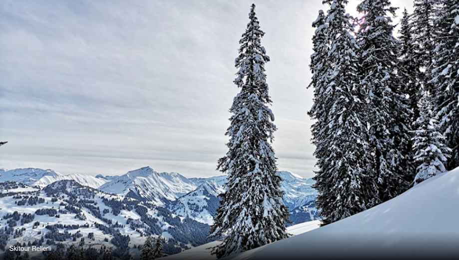 Diese technisch nicht schwierige Skitour auf das Rellerli mit 1.833 m ausgehend von Schönried im Kanton Bern in der Schweiz besticht durch seine grandiose Aussicht.