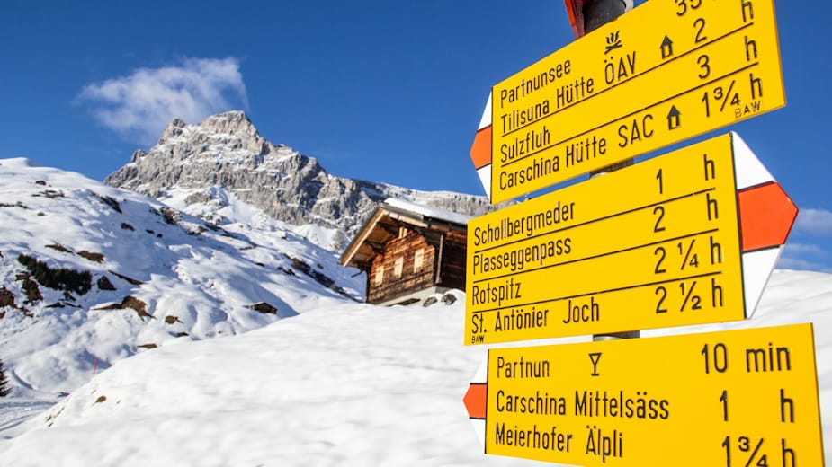 Auf der Autobahn A3 / A13 bis Landquart. Weiter über die Nationalstrasse 28 in Richtung Davos bis nach Küblis. Nach dem Kreisverkehr innerorts links abzweigen in Richtung Luzein / Pany / St. Antönien. Durchs Dorf weiter bis zum Winterparkplatz in Rüti.
