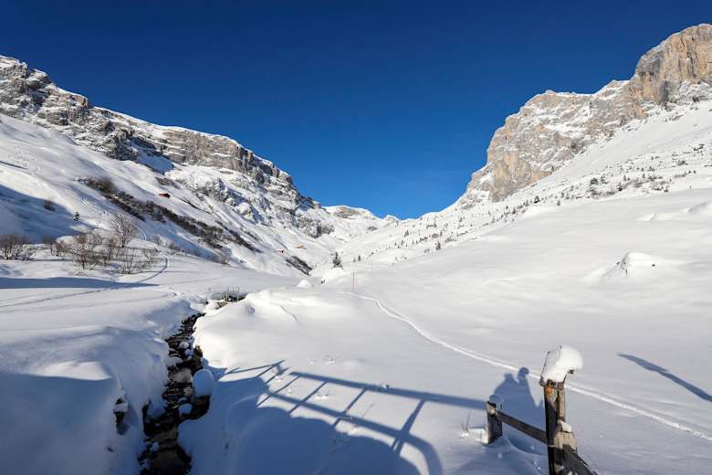 Von St. Antönien Rüti (letzter Parkplatz P5) führt der erste Teil der Tour dem gewalzten Fahrweg (im Winter nicht offen) entlang und dann links hinauf Richtung Partnunsee. Diesen lässt man rechts zurück und steigt über die Partnuner Meder hoch in nordwestlicher Richtung. Auf 2.100 m quert man nordwärts hinein zum Einstieg ins Gemstobel, zur Überwindung sind meist kurz die Ski zu tragen (Felsstufe und Schneerinne mit 35-40° auf 60 Hm).
