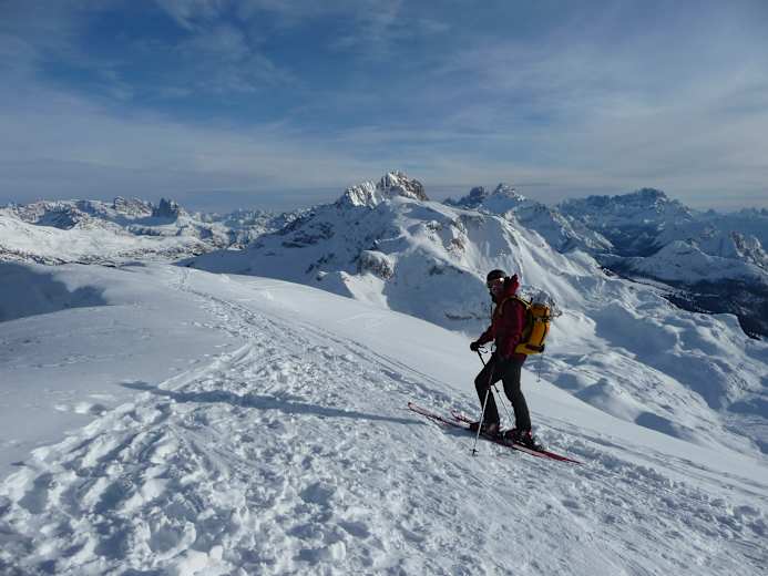 Abwechslungsreiche Skitour in Südtirol mit Ski-Tragepassagen, zuletzt über den Gipfelgrat auf den aussichtsreichen Seekofel mit 2.810 m.
